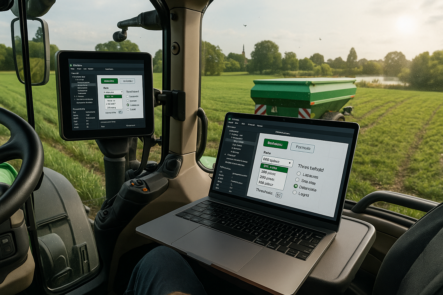 und dessen Steuerungskomponenten (Button, Editfield) für einen beliebigen Traktor-Schlepper im